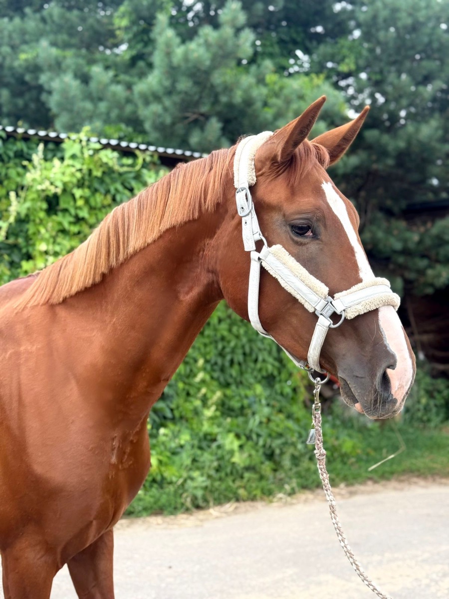 Кобыла 2021 г. Рост 163 в/х еще растет .Заезженна, безопасная полностью,ходит в поля, работает на плацу, прыгает под верхом небольшие барьеры, в шпринте напрыгана до 110, не форсируется , не играет, не избавляется от всадника. Документы ВНИИК, стоит на Вет учете, колется, проблем по здоровью не было. Работается мягко, берейтором. Цена 800 т, возможен торг
