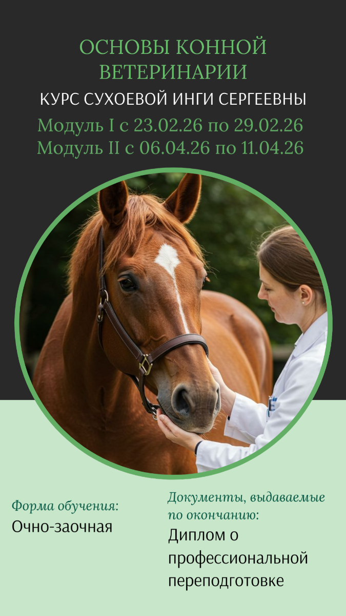?Преподаватель: Сухоева Инга Сергеевна – ветеринарный врач, зоотехник, тренер по конному спорту и конный остеопат.