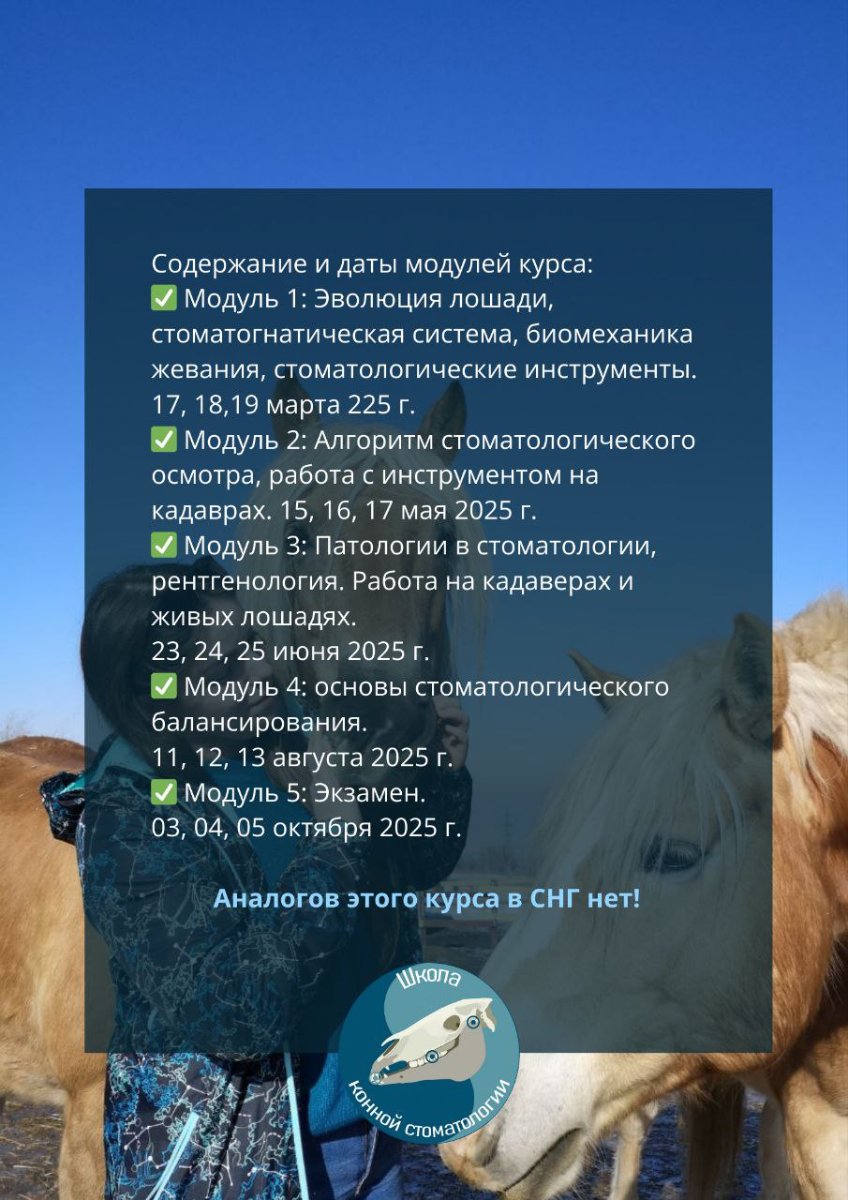 Курс "Стоматология лошади", который вы так долго ждали! Мы решили объединить наши знания в этом курсе и сделать его модульным. Вы можете пройти его за год и получить профессию конного стоматолога.