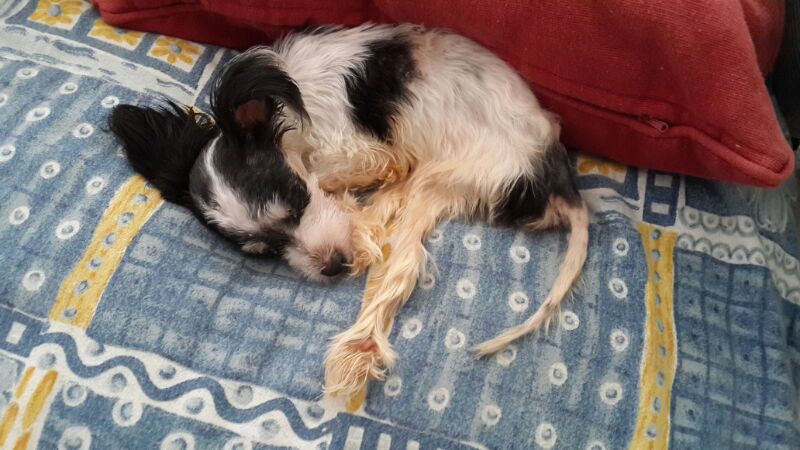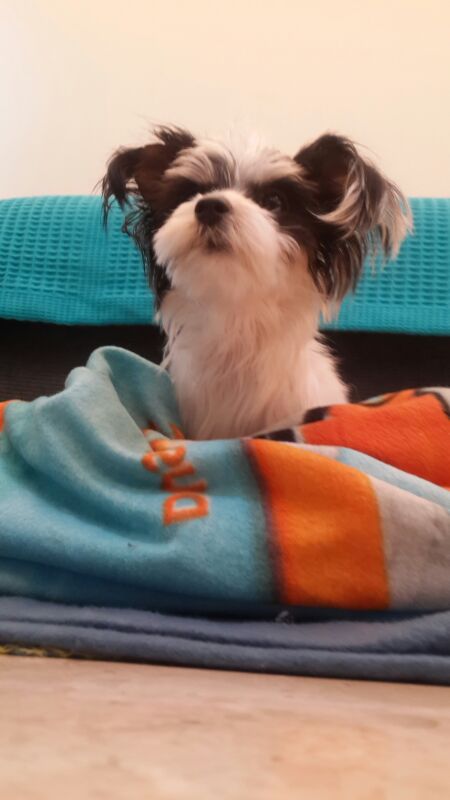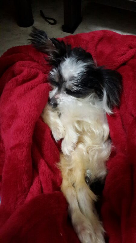 вот знакомьтесь с нашим маленьким Муком...Муки был куплен у заводчика за1500 доларов когда ему было 3 месяца.В 4 месячном возрасте он перенес аварию и перестал двигать задними лапами вообше но вопреки всему был очень жизнерадоснои собалои и умудрялся бегать за всеми на передних лапах таща за собой задние как балласт и гавкая от радости.Так он оказался обратно у заводчика так как колеку никто не хотел.У завотчика он подхватил очень сильный вирус чумки и он как вы понимаете от него избавился нам ничего не сказав.Когда он попал в приют он плохо себя чувствовал ,незная что с ним ждали анализов.На следуюшии день приидя на работу я обнаружила труп...Да я так сначала подумала, потом заметила что этот труп еше дышит.Он не реагировал ни на что лежал на боку плостом стиснув зубы и выпучив глаза и все...Позвонила ветеринару она сказала что по ее мнению ему осталось пару часов и ждать тут нечего.