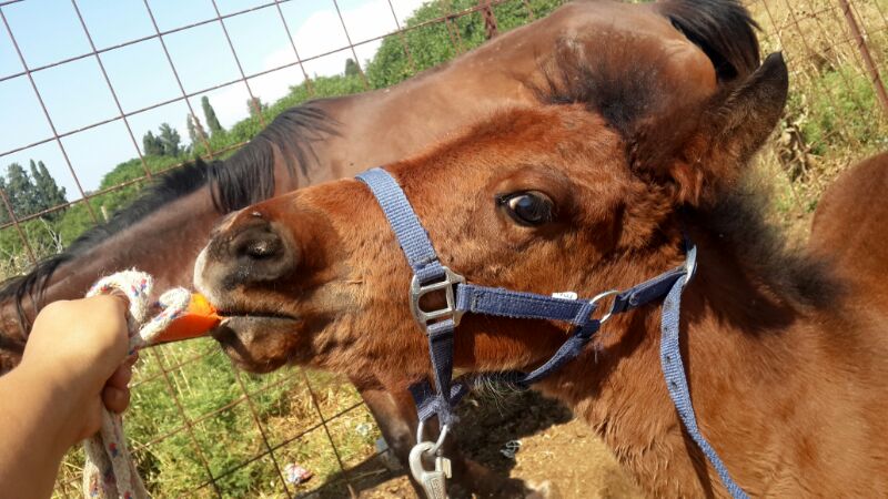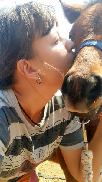 да недоуздок как на нее надела она вообше не пыталась снять ,что с ним что без него ведет себя одинаково. Пока работаю над сниманием и одеванием,и учу ее ходить на поводе.Надеюсь что в скором времени она и к этому привыкнит. Хотя успехи уже есть, мамка выходит первой из стойла в загон, а вики уже со мной на поводе одна идет но правда метра 3 -4 от стойла к ослам в загон и даже ждет пока я открываю и закрываю ворота. :D