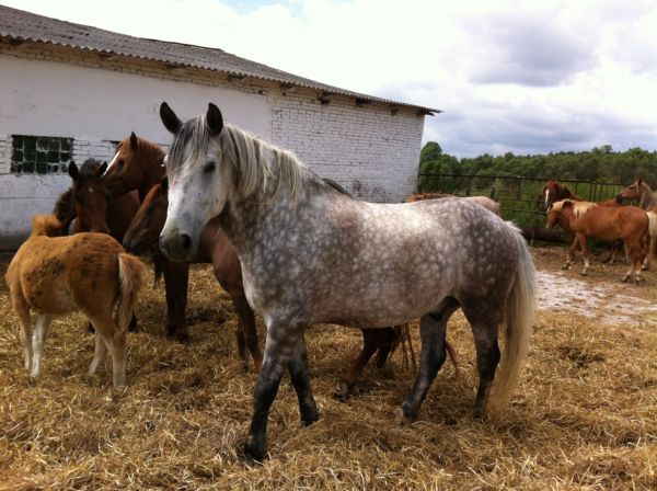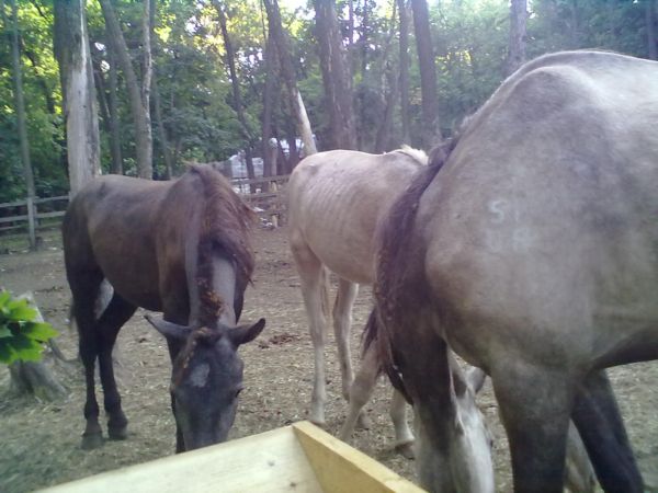 Кобылешки хорошенькие, хотя совершенно потерянные от столь резких перемен в их кобылячьей жизни, особенно масявка - зовёт мамку, оставшуюся в табуне, суётся к взрослой кобыле, та её отгоняет...