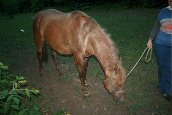 А потом Жолт решил, что он есть дикий табунный лошадь. И начал увлечённо добывать из-под этих самых листиков чахлые остатки травки. Ну да, бедный кобыл же всего тазик-другой зелёнки в день скушивает, недоедает, бедняга, вон и сено недоетое валяется в деннике да в леваде - как доказательство. :mrgreen: