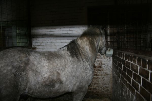 Распакованный в деннике из потрёпанной дорожной флиски, конь стал выглядеть ещё более масштабно. Впрочем, недоуздок размера фулл, раздвинутый на самые крайние дырки, как я и предполагала, на богатырскую головушку налез.