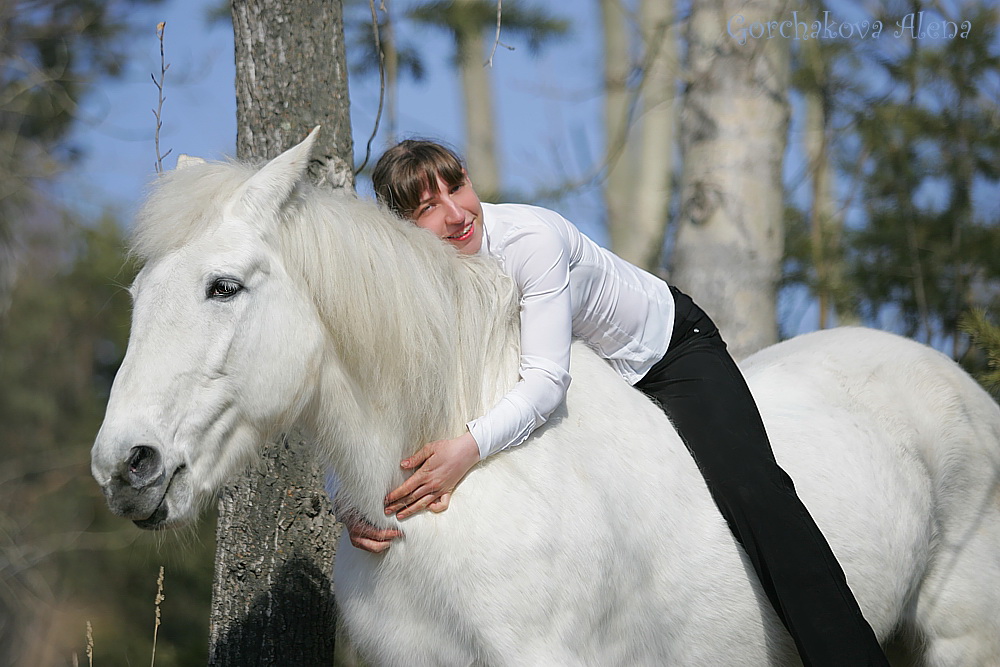 Здравствуйте! Я живу в Новосибирске и в нашем конном клубе живет лошадь Белоснежка. В этом году она справила свой 35 день рождения. Не смотря на свой преклонный возраст, Белоснежка полна сил и энергии. Она по прежнему продолжает принимать активное участие в жизни клуба: она участвует в фотосессиях, обучает будущих всадников уму разуму и ежедневно обходит клубные владения аки царица на утреннем променаде