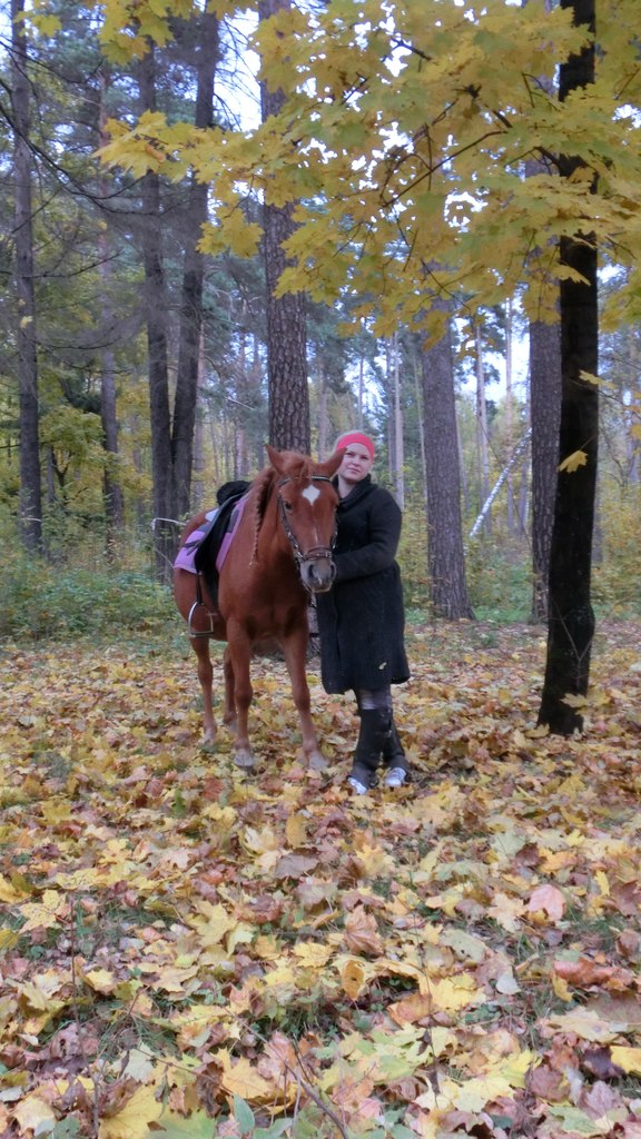 Сижу сегодня дома, смотрела в окно в растроиных чувствах, что не получилось попасть на конюшню и вспомнила тут пару зимних приключений-неудач.первое было так: Орхидея любит иногда во время галопа покозлить, да со всей любовью к всаднику и вот он долгожданный момент наступил первый, второй, третий подъем прошел нормально, а вот потом началось, да и ко всему прочему нам понадобилось срочно найти кустик, сугробчик для уединения и все, что ей пришло в голову на галопе на полном ходу по диагонали влететь в сугроб который мне по пояс это точно, каким чудом мы не упали до сих пор остается загадкой. Первое время я на нее была просто в бешенстве, но когда я поняла из за чего это произошло кроме смеха до конца работы быть не могло. А вот вторая история закончилась не совсем для меня удачно.Было это на масленичной недели, погода была всю неделю не айс, то снег мокрый, то дождь, то вообще все вместе, а работать лошадей надо, так вот поехали мы в соседний поселок нашли нормальную улицу для галопа, ну и как всегда в ход пошли козлы, но этого было мало решила Орхидея сделать серию козлов с сильно опущенной головой и сама не удержалась на ногах мы стали падать, но упала в итоге я, до последнего держа повод, но поняв, что просто сейчас я или сними с нее уздечку или того хуже порву отпустила,а она пробежав метров 50 слава Богу остановилась, но на все мои призывы она не реагировала вообще, а когда я стала звать ее домашним именем уже чуть не сквозь слезы, так как понимала,что дальше идет шоссе она на удивление даже пошла на встречу.Ну я конечно на этом не остановилась и мы все таки сделали галоп именно там, хотя Орхидея очень боялась в начале этого места, где она меня уронила из за своей игры. А вот шея и спина у меня болели еще неделю, так как упала я именно вниз головой и плечом. http://m.fotki.yandex.ru/users/irina-ir ... w/1009448/