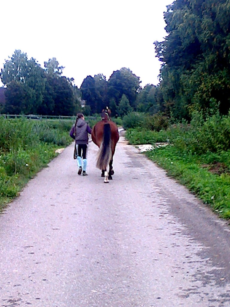 Попросила погнуться, на что та с радостью все сделала. А потом за мной приехал папа, и забрал меня. Мне безумно нравится, что мисс становится адекватной, с ней приятно общаться и уже можно уходить гулять. Самое интересное что она ведет себя одинаково, независимо идет она только со мной или с нами еще лошади. Вообще я горжусь своей кобылой.