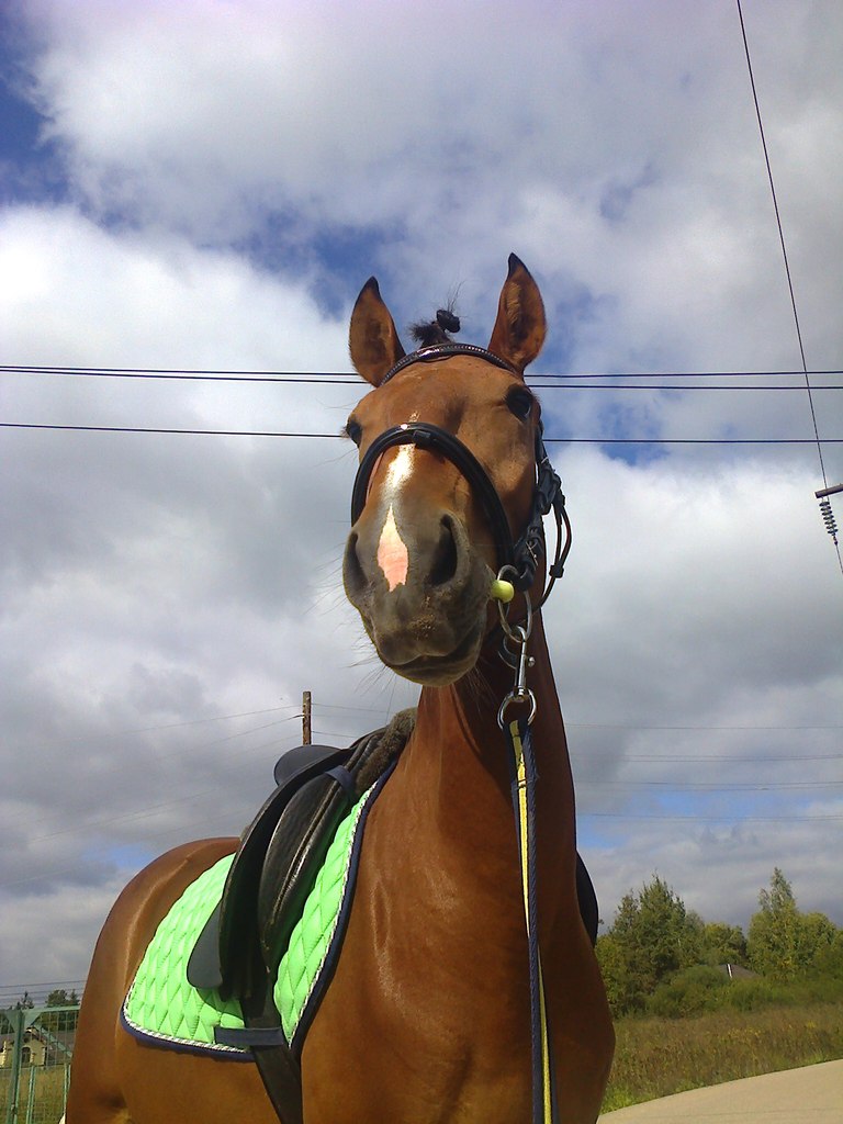Пора вылезать, Танюш спасибо за фотки. А у нас все стабильно и спокойно. Последние дни занимаюсь с мисс сама, она очень радует. На днях она первый раз пришла в охоту, и показала всем что она кобыла . Позавчера попросила мисс сделать осаживания, она очень туго соображала, а вчера с радостью осаживала и получала сахар. А еще у нас прогресс вчера бегали на корде а кобыла старалась сдать затылок, у нее даже получалось, за что она была захвалена. Потом мы позанимались в руках и пошли в поля на прогулку. Мы прошли почти все поля, кобыла с удивлением на все смотрела но гордо шагала. Потом я попросила ее идти медленее и вот она пошла медленно. Просто чудо а не лошадь, вообщем очень довольна я ей. А сегодня заехала с утра и почистила кобылу. Навалила сена в денник и со спокойной душой уехала на дачу. Сегодня др у папы и это скорее всего последние выходные тут, очень жалко я так привыкла жить с пятницы по воскресенье тут, ведь это здорово проводить время всей семьей! Правда началось это все с нехорошего события в моей жизни, никому такого не желаю. Ну вот так мы и живем