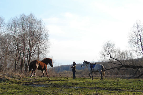 Люд, я последний раз выезжала еще осенью с левады, когда снег лег и все. Вчера первый раз был, сегодня не поехала, пусть полянка подсохнет, а то слишком скользко.