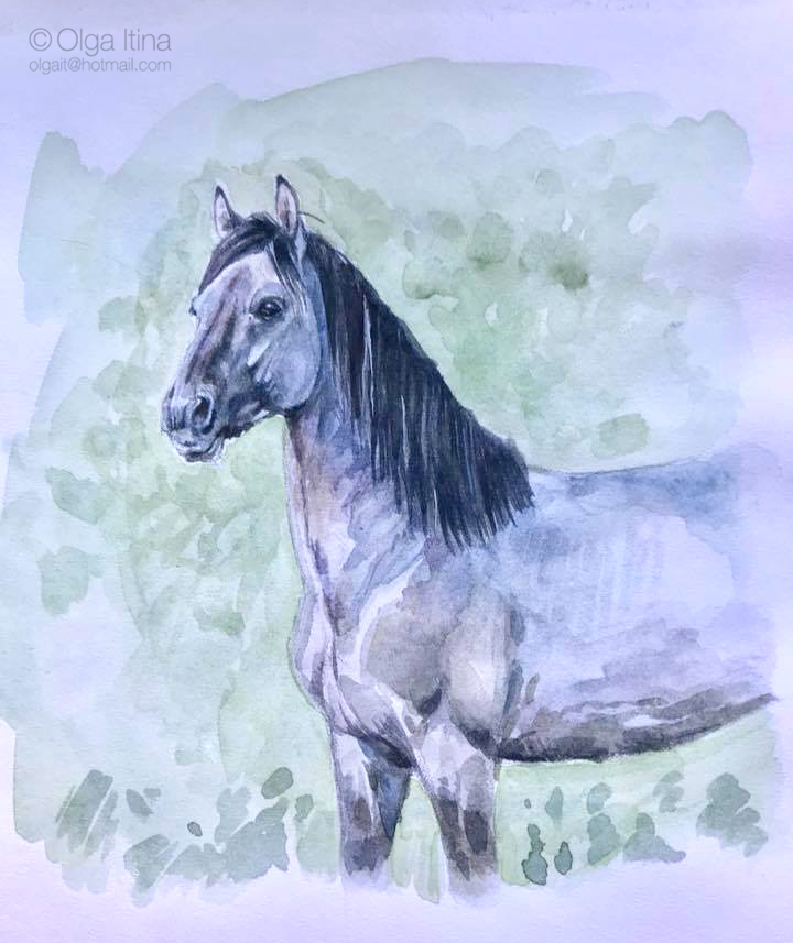 Loshadnica Опытный 1 Апрель 2019 #54 Anton B. Акварель, Canson. Один из промежуточных этапов. Конечный этап нормально не сфотографировала пока.
