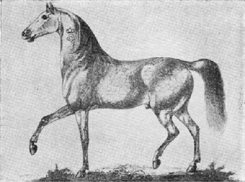 Датский жеребец Пегазус Фредериксборгского завода. С картины 18 в.