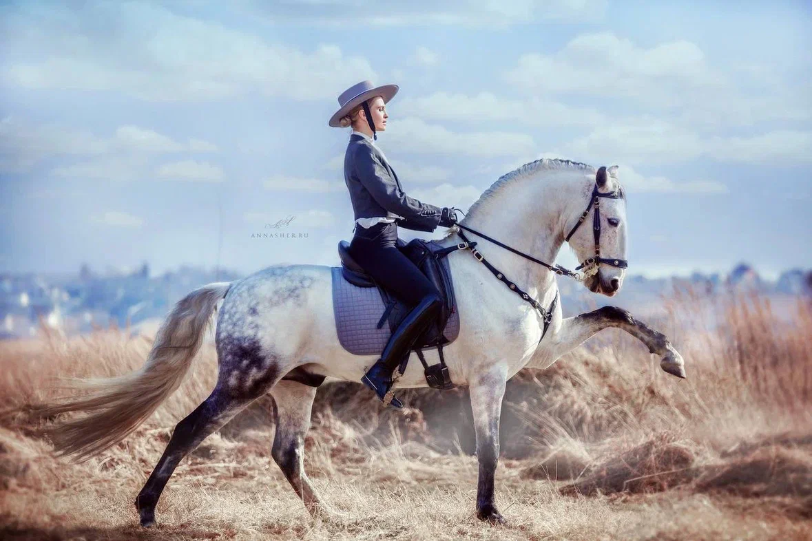 Элегантный, безопасный, спокойный, надежный партнер. На всех площадках ведет себя идеально. В руках ласковый как кот, уважает и очень привязывается к человеку, в коневоз заходит сам.