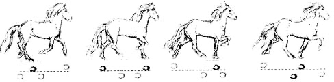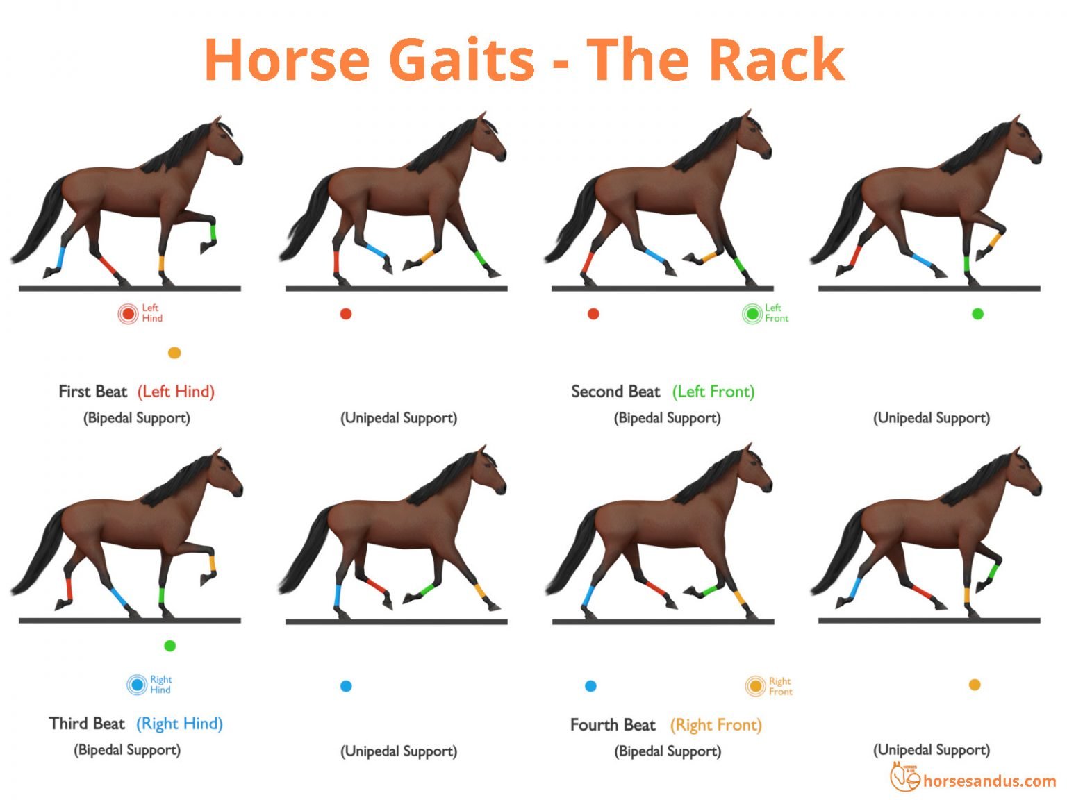 Про тёльт. По сути тёльт — это хода — четырехтактный аллюр с последовательностью движения ног как на шагу и с равномерным ритмом 1-2-3-4, для которого не характерно кивание головой. Тёльтом называют энергичную ходу с фазами опоры на 1 и на 2 ноги (другие названия rack/single foot).