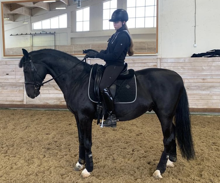 Лошадь находится в регулярном профессиональном тренинге, проходит подготовку к тестам юношеского уровня.