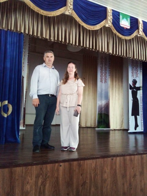 Попрощавшись с новым/старым знакомым, мы пошли смотреть среднюю школу, где Муса учился. Тут я думала, просто посмотрим на нее, ну может быть во дворе погуляем. А Муса сначала остановил молоденькую учительницу географии, так кстати шедшую по двору, расспросил, кто из прежних учителей еще преподает, еще какие-то детали... А потом мы пошли в саму школу, охранник оказался тоже ингушем, и нас - чудо! - пропустили внутрь. Мы ходили по коридорам, заглядывали в классы, спустились в спортзал ("Надо же, пол тот же! Только покрасили"), зашли в актовый зал... Блин, я в своей-то школе вот так не была со времен выпуска сестры! А тут - такое. Очень приятная, кстати, школа. Не знаю, все ли они у них такие, эта все-таки в центре города, но... Я бы хотела в такой учиться.