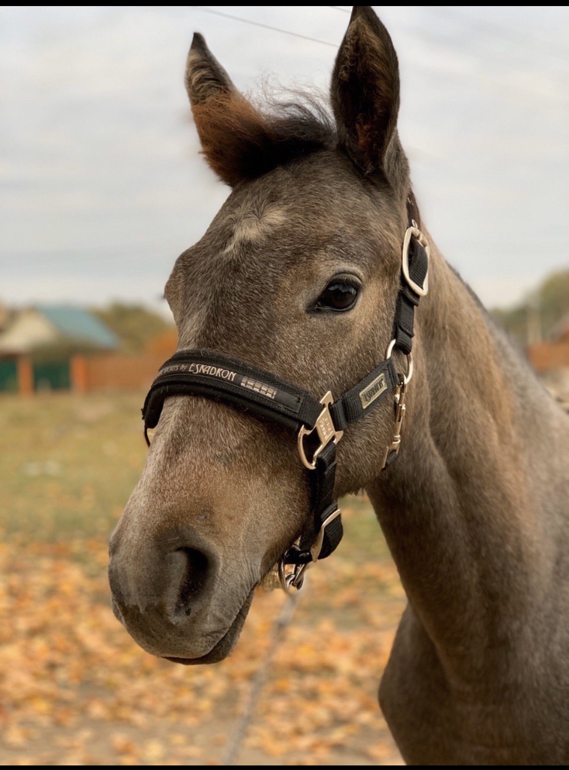Жеребёнок очень контактный, невозможно отвязаться от её ласки.