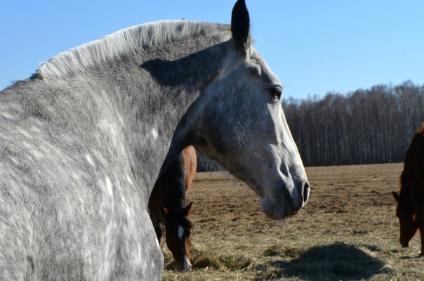 была сегодня у своей лапули)ветрище пипец!на улице находиться не возможно!по этому приехала сделала генеральную уборку денника!все помыла!потом забрала Манюню накормила обедом дала вкусняхи)и отпустила гулять!искала сегодня попону...ну не могу найти и все тут!уже когда домой собиралась стою у кормовой и вижу что то в поле лежит... до боли знакомое!пошла посмотреть и точно!наша попона!вот как?спрашиваю как такое может быть?ушла лошадь гулять в попоне а пришла без...и никто не поинтересовался где она....самое удивительное что попона целая и все ремни застегнуты!вот как она её сняла?как?фокусник блин!видать решила что сегодня она будет гулять в стиле НЮ! :lol: ну да ладно пусть гуляет без попоны раз такая грамотная :)а еще ходили с Манюней к озеру)не на долго так как очень холодный ветер!но там она мне и свечку сделала и на кранч встала и много всего что просила)нравится мне что она свободно уходит от табуна и с удовольствием общается)а потом забрала Белку тоже начистила ...мадам непоседа сегодня вела себя достойно за что получила много вкусной морковки!и пошла гулять к подружкам!а я поехала домой)вот уж как домашние удивились когда я в 7 часов домой заявилась! :lol: такого они от меня не ожидали ну ни как :)