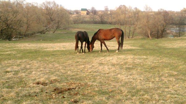 да им там явно весело))))вчера была у девок..обе радуют.одна спокойная становится и рассудительная прямо маленькая лошадь-лошадь!вторая хоть и в охоте но очень нежная и ласковая..работать не хочет протестует а вот в личном прямо ласкучая как кошка))))))вывела вчера Манюню на плац погонять немного думала она на ходу уснет и рухнет :lol: вот прямо совсем лень лошадке шевелится))))а вот в поле так носится только в путь!ну да ладно все равно пришлось побегать!и не только рысишкой но и галопчиком :) потом отпустила к дружбанам!но явно она ожидала другого и в недоумении стояла возле выхода а я пошла взяла яблок и морковки и захватила мелкую козюлю хоть часок погулять.так как ходили на плац днем хромота у Белки не просматривалась так что решила немного ей дать побегать...согласовали с Христиной добро получили от мамани и пошли в поле))))Белка глазам своим не верила крайне обрадовалась :) а Манюшок получила яблок и пошли они с мелкой травку щипать...кое где повылазила молоденькая травка :) тут же принеслась Лаура и еще куча друганов!вот пришли здороваться!вот у них тоже своя жизнь свои предпочтения друзья!удивительно!а я сначала ходила с ними смотрела как Мелочь себя вести будет что бы ножулю не напрягла и завтра тоже могла гулять...но она вела себя достойно без истерик и гонок так что я со спокойной совестью пошла налила себе чаёк и сидела на балкончике наблюдала за девчонками!и вообще день был сам по себе удивительно приятный!тихо мирно и спокойно))благодать!я даже машину помыла))и до конюшни доехала через поле!красота!ни тебе камней ничего отлично проехала!а то этот душераздирающий шкреб по днищу уже приводит в ужас...но сервис нам светит явно так как масло стало подтекать видать не прошли даром эти каменные катания...соберусь с духом сгоняю на сервис узнаю на сколько я попала...еще вчера Белке навела афро прическу))))))очень она мне с косюльками нравится)))Манюшок в этот раз была на удивление чистой!видать вникла моим просьбам :roll: или грязь подсохла :lol: сегодня узнала что выпустили баранов на поле...пипец конечно трава еще очень маленькая а они её выстригают под ноль...в том году их было меньше и то косили все ...а сейчас их вообще ужас сколько...и продолжают плодится...мда уж..все таки их нужно иногда или продавать или резать а то скоро их столько станет что ахтунг... а уезжать вчера с конюшни аж совсем не хотелось...тепло тихо вечером...но ехать надо :)