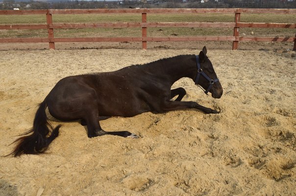ну вот!отпишусь)2 дня ездила на конюшню :) в пятницу ездила на своей машине а в субботу меня Христина забрала!и о чудо!я ехала как белый человек!отдохнула))ни тебе руля ни тебе концентрации внимания!лепота!по дороге заехали в кафе Пончик!налопались так что еле оттуда выползли!вот пипец!еще и кучу пончиков и кукурузы вареной Христина купила в общем это нам помог народ на конюшне съесть))))а то нас точно разорвало бы :lol: приехали только припарковались смотрю Манюньку на обед заводят!ясное дело я к ней и её отпустили с чембура...а у меня то нет не недоуздка ни чембура...так что мы так чудненько дошли до конюшни)потом надели недоуздок и пошли ножули мыть.а там и обед!покушала девочка получила вкусняшек и приступили к чистке))вот блин они всегда найдут где изваляться!сейчас у нас на поле навалили кучи с навозом что бы почву удобрить так эти инштейны там с бОООльшим удовольствием валяются!кто на что гаразд в общем тюнингуются на свой вкус :lol: ну так вот начистила девочку она у меня опять линяет!от шерсти наелась уже за весну))))и у нас повылазили кучи кучные клещей!сняла штук 10 с Манюка.надела ватники и поставила сено жевать на часок.пошла сама поболтатала с народом..потом сняли ватники и сходили на плац немного размяться.бегала хорошо активно а то всю зиму как сонная была...а тут прямо конь огонь)потом отрабатывали поклон на одно колено!от уже все почти прилично получается хоть и с моей помощью но все таки.нет паники что упадет уже сама на колено встает.в общем медленно но уверено идем к цели.ну это вообще мой принцип не форсировать...лучше медленно но уверенно :)