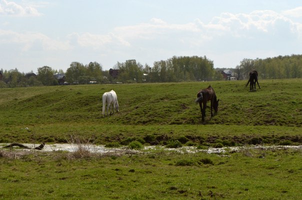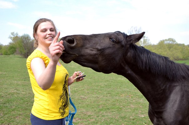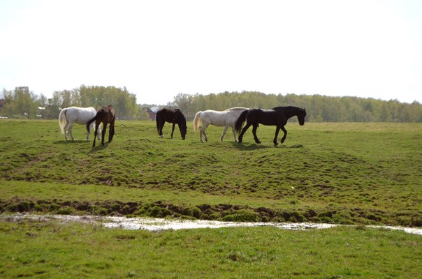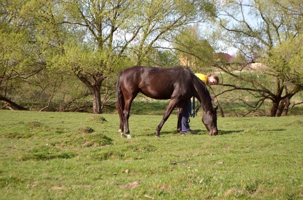 забрали Маню отстирали хвостик Христина вычесала шерсть я прочесала гриву там столько клещей напившихся!!!!капец!в общем отмыли пузик ножки и отпустили гулять!а то дружбаны Персей и Манюня стояли возле выхода и ждали когда подружайку отпустят :lol:выпустили дамочку, а мы пошли жарить мясо!я мариновала на шашлык но так как мангала и решетки не нашлось мы его жарили на сковородке!все равно получилось очень даже вкусно))))приехала Лена хозяйка Рудольфа Николаевича :) отлично посидела налопались мяса с овощами и тут опять меня посетила гениальная идея что нам нужно с Настей и Женивьевой сходить на прогулку в поле!мою идею Настя приняла на ура и пошлепали за лошариками ))как обычно они были в самой опе мира!в конце поля :lol: отловили почистили,поседлались и поехали!Манюня вела себя спокойно но вот после той зимней прогулки меня опять посещает чувство страха...что побежит что могу улететь...или еще чего...вот только избавилась от этого чувства и на тебе опять..буду пересиливать себя..шагали по полю пока наши дамы не увидели страшенную кучу земли :lol: ой не могу!ладно моя!но вот от Снежки я такого не ожидала)))))моя затопталась зафыркала!я её развернула похвалила за то что она не стартанула и не упала в обморок и мирно пошли в сторону дома!естественно Снежка за нами)))))хорошо прогулялись нужно перебороть опять свои страхи и наслаждаться этими поездками))))