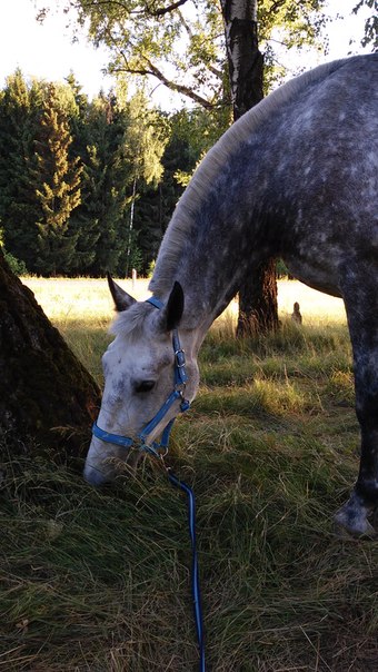 только вернулась от Манюни ) сегодня выехала крайне поздно для пятницы-работала)везде пробки но навигатор меня как то провез что я и не стояла!удивительное рядом :lol: приехала девочка гуляет но как то не очень спокойно...пошла глянуть а ее оводы одолели!бедненькая!забрала бегом в мойку обмыла её видно было как ей хорошо глаза прикрывает и кайфует)))отвела в денник поставила дала морковки и яблок оставила сохнуть)высохла почистила её напшикала совсем девчушка успокоилась и тут бац!и увидала стоящее на улице кресло!оооо!давно она так ноздри не дула :lol: и фырчит и глазенки пучит и что ты всем своим видом дает понять что пора бежать мать спасаться :lol: но маманя у нее злюка и пришлось идти и знакомится с креслоконоедом :lol: подошла понюхала и все...типа страшненько и не было)))))пошли на плац сначала 4 рыси по 5 минут размялась потом взяла на корду и 2 галопа по 2 минуты)и дальше работали шаг-рысь-галоп-шаг-галоп-рысь ну в общем переходы все отлично нет претензий)ну и пошли в руках работать кранч-гнулась Манюня по всякому -поклон и как кульминация вечера укладка!получилось минут 5 конечно пришлось поуговаривать но сам факт!такими темпами скоро это станет нормой)))наконец то))))и оставила пошагать на плацу а меня позвали на вкусный шашлык)как раз к стати есть хотелось не по детски))))все лошадки в 10 пошли домой а Манюня пошла гульбенить на территории левадного хозяйства.как и каждый вечер))все поужинали а моя звезда категорически отказалась идти есть!наварачивала траву!красота паразитов летающих нет)но все таки отвела ее поужинать и отпустила обратно гулять))))сегодня у нас эксперимент будем гулять ночью!переживаю конечно но ей хорошо ни кто не жрет погода шикарная!тепло!а если погода испортится то ее заведет охранник который всю ночь на кпп сидит)в общем утром узнаю как она там....в первый раз она ночью гуляет и самое удивительное совсем не хотела домой!а вот в то время когда паразиты типа оводов летают она будет стоять в конюшне, до моего приезда пока не привезу пшикалку так как наша кончилась а без нее совсем сожрут Манюка :roll: