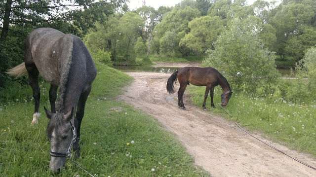 решила с ней еще чуток погулять и отпустить в леваду... мы хотели шашлыки жарить))))и тут лошадка внесла небольшие коррективы в нашу прогулку :shock: поднялась на свечку,потом изобразила козла и айда вокруг меня галопедрищем носится :shock: если честно я была не готова к таким поворотам но сдаваться тоже не в моем стиле :lol: народ высыпал из конюшни кричат мне- бросай!потом поймаем, прибьет тебя!а у меня голова аж закружилась и одна мысль -не брошу!