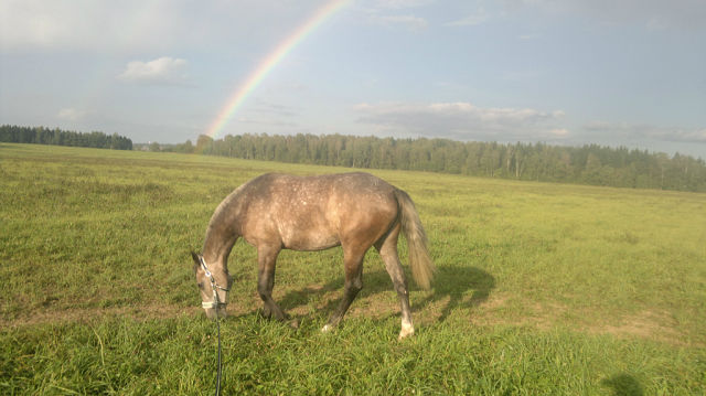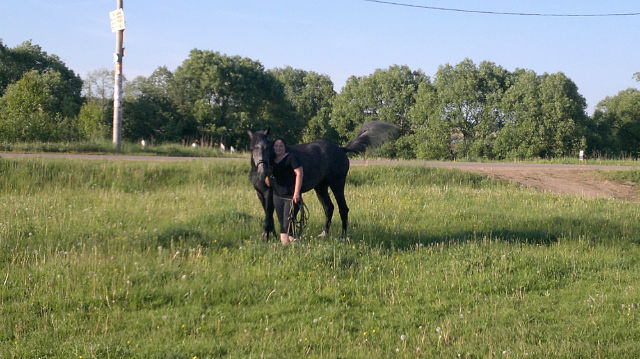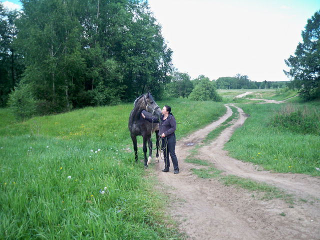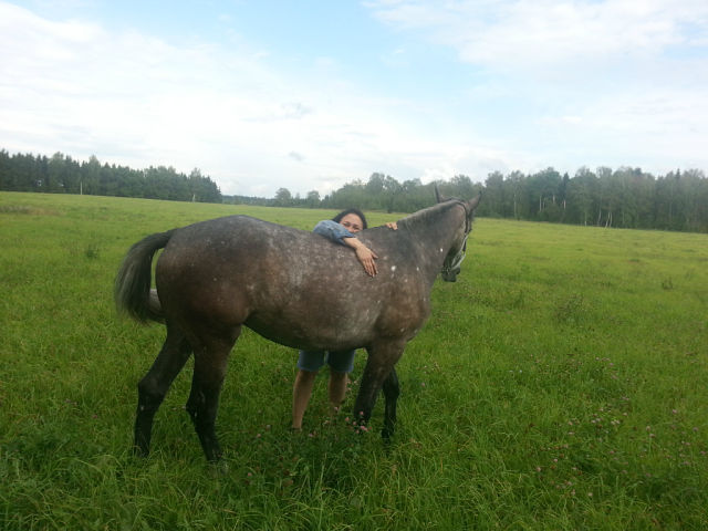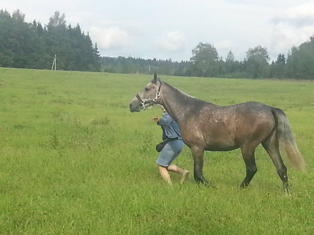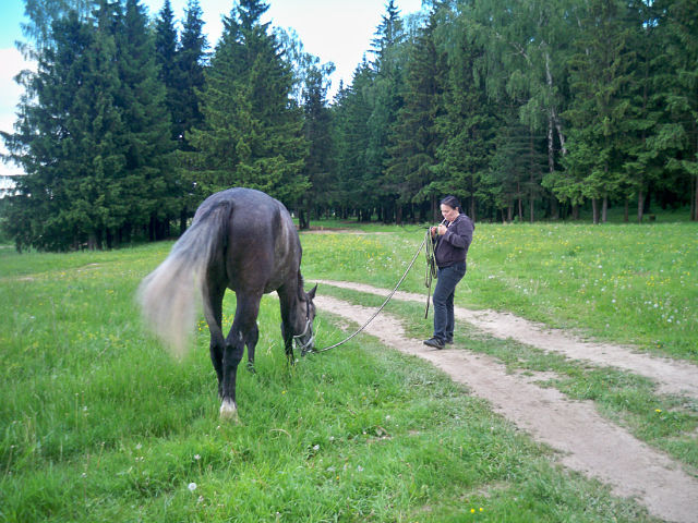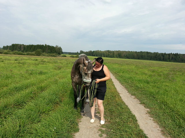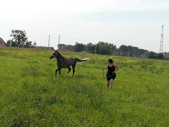 когда нибудь устанет!)))))и тут мое чудо подскользнулось на траве и рухнуло!думаю капец убилась!я к ней!страшно.а с другой стороны жалко-небось больно шлепнулась)))она поднялась ноздри пипец раздутые.а глазенки перепуганные!пожалела ,отшагала,отвела в леваду....но одно хорошо после этого случая она больше не пыталась бежать, корду вырвать или устроить мне такое родео!урок запомнила даже если мне пипец как страшно корду не отпущу...да и не за чем ей .....за это время мы привыкли друг к другу и нам рядом комфортно и спокойно)))