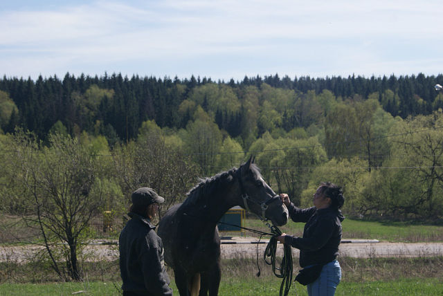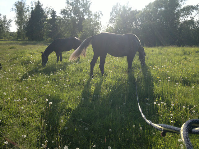 нашла фото с прошлого лета)))и вспомнила как в тот день мне манюня устроила проверку на прочность :lol: было 2 мая и моя подружака должна была приехать в гости посмотреть мою манюнечку...мы навели красоту гриву заплели ну не лошадка а прелесть))))))вышли травку щипать все чудненько и волшебно)))))))))приехала подружка...моя лошадка выпендривалась как могла и поклончики и побегала все отлично