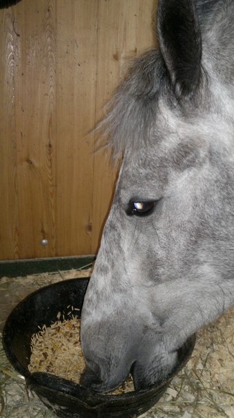 сегодня дождалась обеда покормила Багиру))))))люблю смотреть как она жует)))а жует она оооочень медленно!все уже поели давно, а она только половину съест за это время :lol: ну замечтательная лошадь :lol: потом отпустила её гулять.....как я люблю такие моменты!вышли на поле я сняла недоуздок а она стоит рядом трется :) чмокнула в носик сказала иди!и она голопищем понеслась к табуну!нет ничего красивее свободной лошади!когда несется с веселым ржанием.....мммм....как хорошо что есть такие места где и кормят и ухаживают и есть вот такая возможность свободно носиться! :) еще сегодня меня конюх порадовал что она больше ни с кем не дерется!вот это действительно хорошая новость!а то как боевик ни себе ни остальным лошадям покоя не давала :)