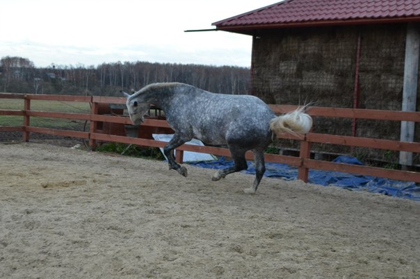 ой, спасибо :) :)и мы приветствуем)))))) :) да мы еще те дамочки :lol: вот моя серая никак не может угомонится!все ищет себе на пятую точку приключения!ведь есть поговорка-что попа без приключений это не попа,а так унылые булки!вот моя и решила что унылые булки это не наш вариант и удачно ищет приключений!то на трап залезет почти 2-х метровый -хозяйка горы блин!то в корыто заберется ...а тут совсем блин отмочила!подошла к телеге засунула ногу в крепление прицепа и стоит его качает!раз ей пендаля наваляли она отошла подождала пока все уйдут и айда прицеп шатать!ну вот и чего ей мирно не гуляется!!!!!!!!!мне вот иногда кажется что они уже с завтрака придумывают чего им отмочить что бы всем не скучно было!их в одну калитку выпускают они чуть ли не в припрыжку к другой открывают её и айда всей бандой в рассыпную! :lol: поотлавливают опять выпускают они опять своей тропой к заветной калитке!пока раза 3 пендаля не хапнут мирно не гуляется!сегодня моя звезда изображала что она меня не знает и домой со мной не пойдет!вот ведь баба блин вредная!она когда в охоте просто невыносимая!опять отгребла от меня....сразу признала, и домой сразу ей так захотелось :lol: в общем с Манюней не соскучишься!я вот сегодня не сразу вычислила что дамочка в охоте и на плацу все не могла понять чего она вдруг чудить....то одно отмочит то другое...потом попросила кранчь сделать ....вот тут мы сразу все забыли пока я не гыркнула....ладно с ним разобрались....еще немного погнулись и отпустила с миром в поле....но вот от вечерней пендюлина мадам все таки решила не отказываться :lol: вот ведь неугомонная душа :lol: