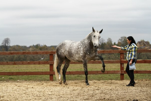 дождь....вероятно скоро это явление станет не просто привычным а таки родным!встала утром...ура!солнышко!я вся такая счастливая собралась на конюшню...вся в мыслях наконец то ясный денек...ну да!конечно морда треснет от радости :lol: села в машину солнце скрылось...отъехала от дома совсем пасмурно стало...по дороге еще пару раз выглянуло и все!лимит исчерпан :evil: ну хоть дождя не было какое то время!поработать успели!правда Манюня обросла и потеет очень...но все же поработали с ленцой конечно но без тараканов обошлось....даже кранч делала спокойно и сама :) ну понятно что получила вкусняхи :lol: еще сегодня у нас коня увезли :roll: всегда такие моменты почему то грустные...привыкаешь к лошадям к людям и кто мне теперь крысы строить будет :lol: но ему нужно в стационар что бы яки отчикать :twisted: да и у нас нет условий для жеребцов так как только кобылы и мерина :) но вот как грузили отдельная история!просто пипец!ни в какую не идет и все и косынки ему одевали что бы не видел и т.д....в общем только с уколом и с помощью кучи народа!и только после того как приехал бывший хозяин...все таки он по нему скучает...а говорят что им все равно кто их хозяин...и много раз убеждаюсь что не все равно они тоже любят и скучают....