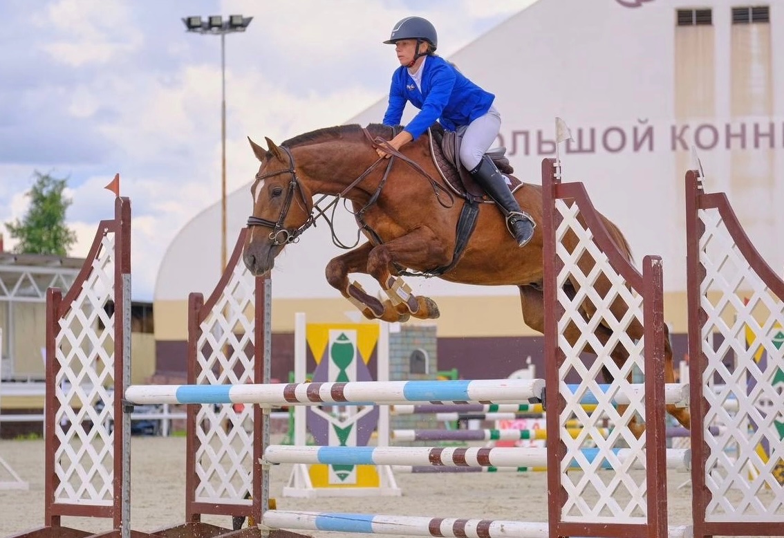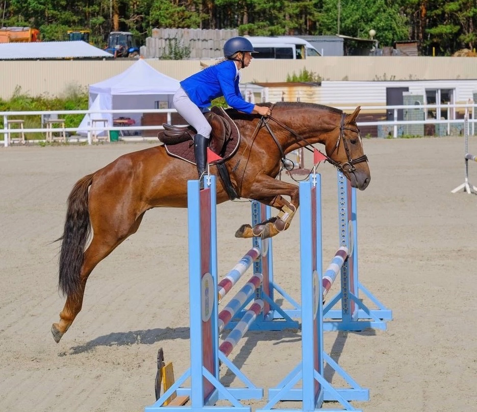 Имеет стартовый опыт по маршрутам до 100 см, дома маршруты до 110 см, перспективен на высоты. Не жеребцует, обладает отличным и спокойным характером, ничего не боится.