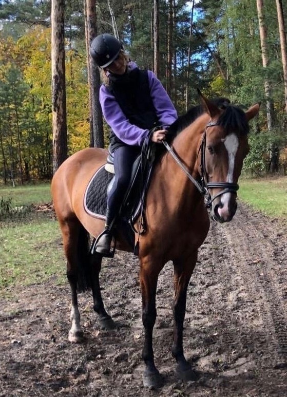 Старты - маршруты до 100 см на местных соревнованиях. Великолепно катает детей и новичков на корде. Активная, удобная, интересная в работе. Хорошо ходит в поля, стоит на фотосессиях. Стабунивается. Строгая в деннике, помимо этого проблем нет.
