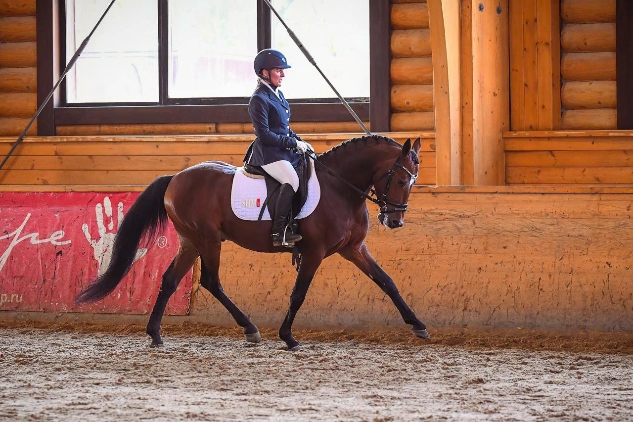 Имеет стартовый опыт по маршрутам до 100 см, напрыган по одиночным до 120 см. Стартовал по Любительским ездам под ребенком. Спокойный, изредка проявляет себя голосом. Также катает начинающих на корде. На барьеры не смотрит, пугалки эмоций не вызывают.