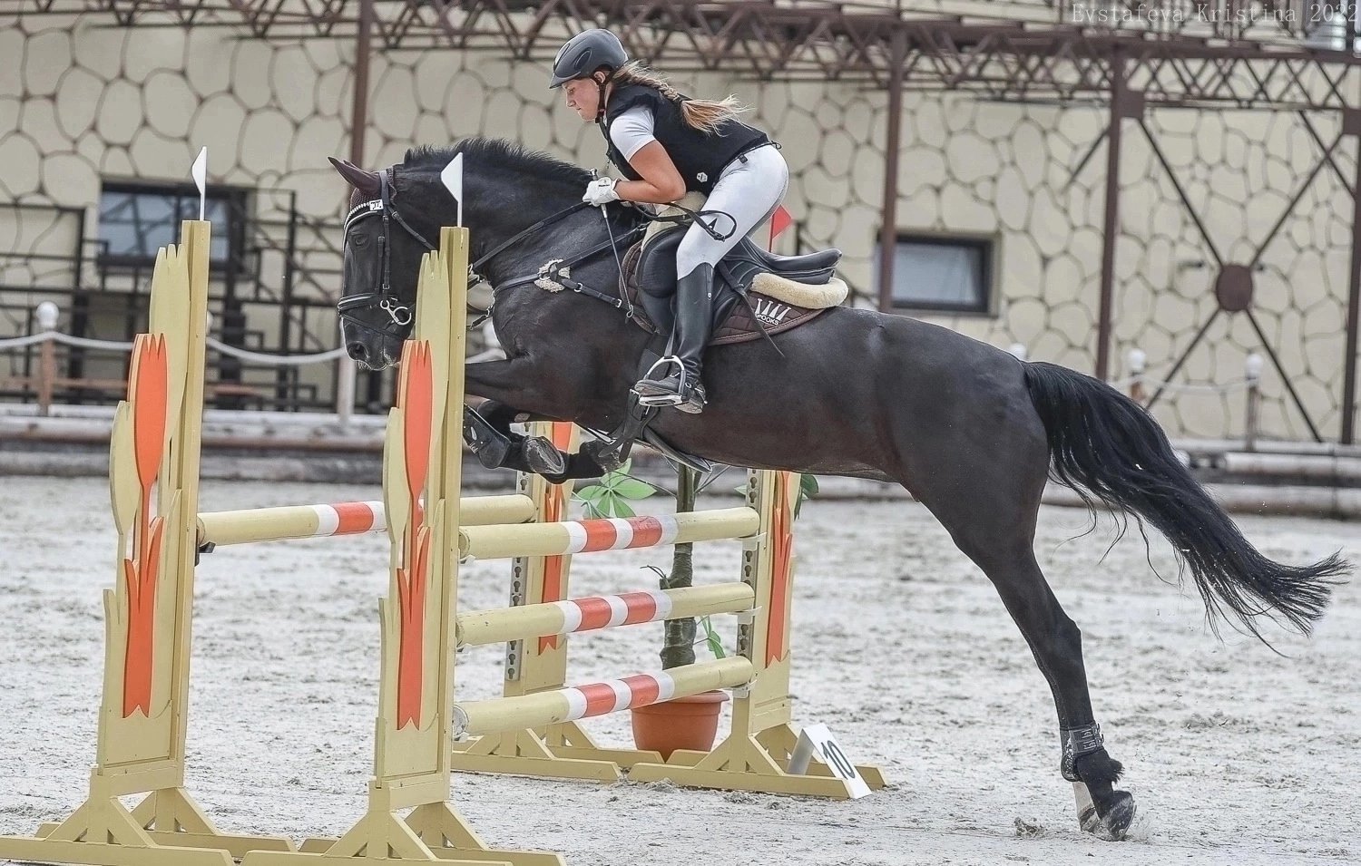 Имеет стартовый опыт по маршрутам до 100 см, дома маршруты до 110 см. Знакома с троеборными барьерами, идет смело, не смотрит. Спокойная в руках, все бытовые манипуляции без проблем. Добрая, смелая, адекватная кобыла, без тараканов в голове.