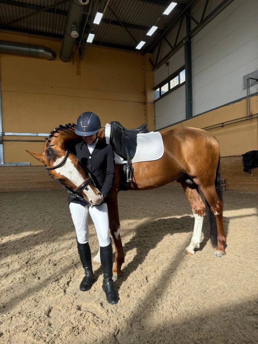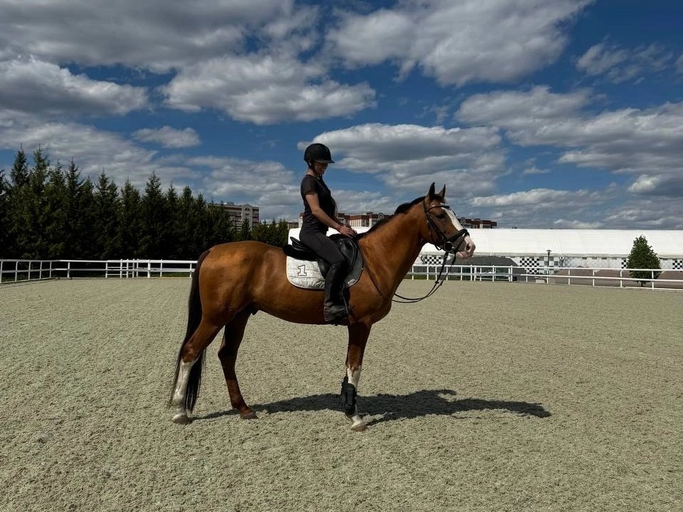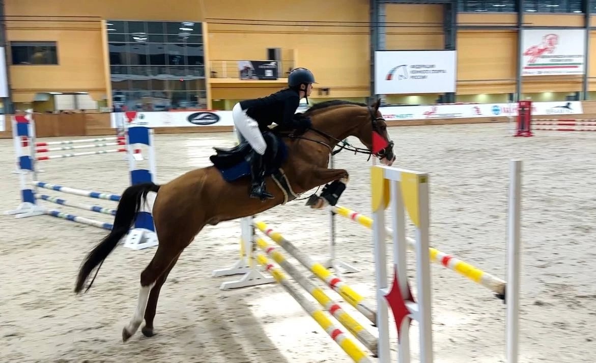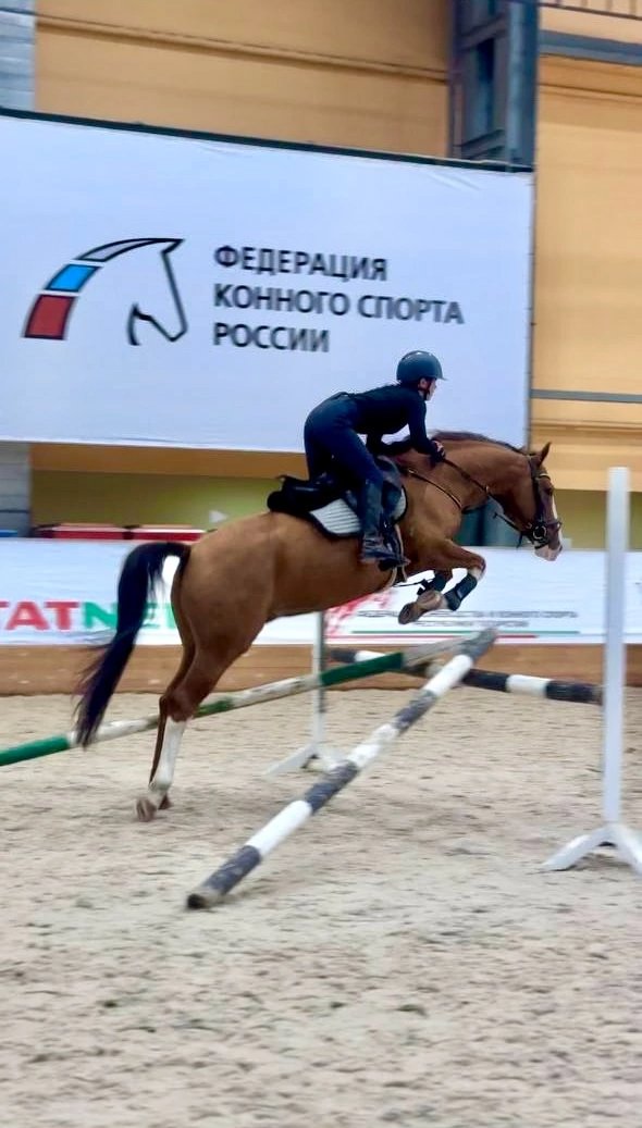 Старты - маршруты до 100 см (перспективен выше), езды для 5-летних лошадей (66,8%). Ходит в поля. Простой в управлении. Смелый, прыгает из любого положения, на конфигурацию барьеров не смотрит. Не жеребцует, ничего не боится, спокойный.