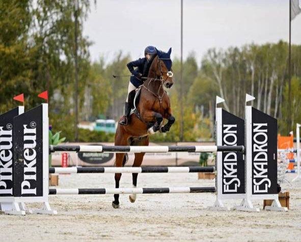 Старты - маршруты до 110 см. Дома - маршруты до 130 см, связки до 140 см. Удобный под седлом, мягкий. Очень ласковый, за еду готов на все.