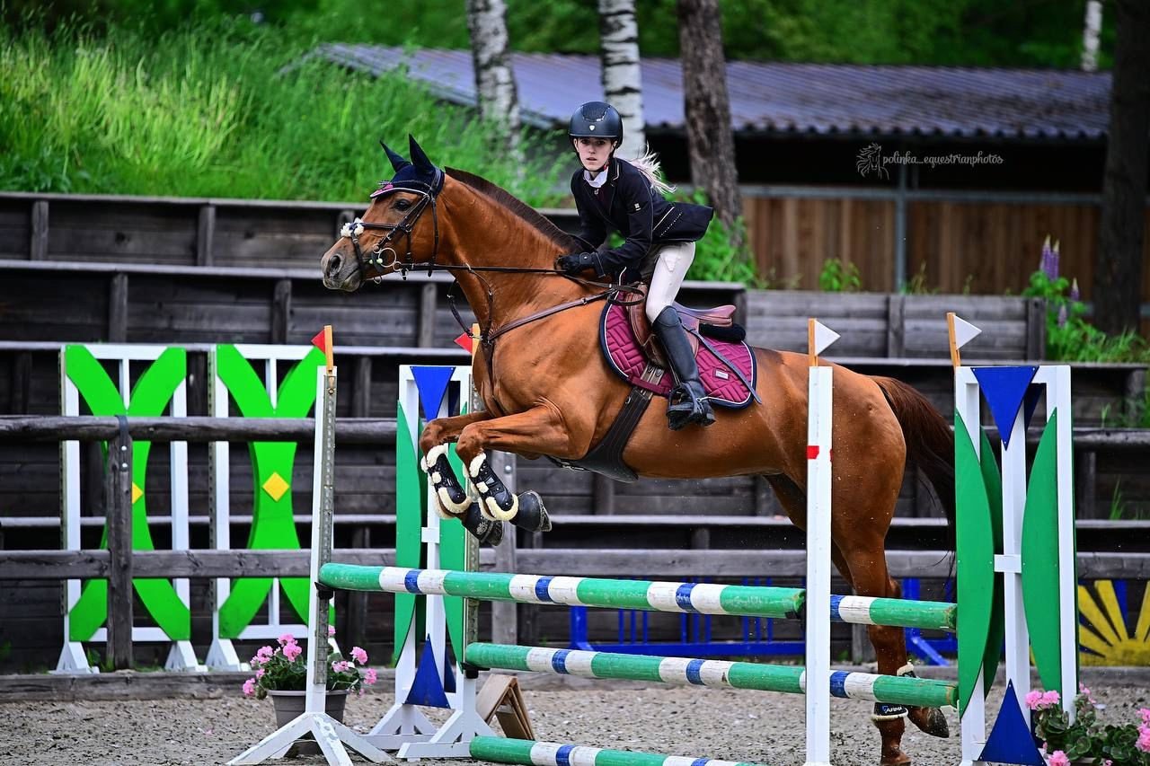 Старты - маршруты до 95 см. Дома - маршруты до 110 см. Ездит и прыгает 13-летний ребенок. Очень общительная, ласковая.