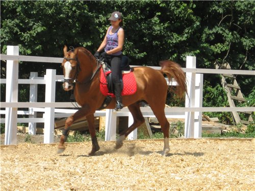 Поэтому мы с ней отправились на речку.Она с начала была не в восторге уходить от конюшни и на каждом повороте пыталась развернуться назад.Но увидев речку во одушевилась .