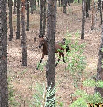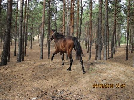 Она с ним занимается НХ поэтому он почти всегда на свободе и понимает ее с полуслова.Живет он на маленькой частной конюшне.Там 3 или 4 лошади.А это летом вовремя пожаров он жил у нее.