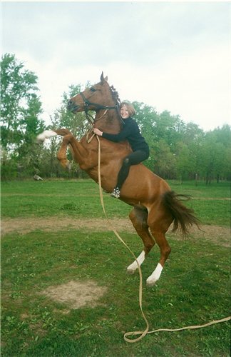 Ушла к другой хозяйке на более сложную лошадь .Звали ее Карма(что в переводе судьба)Эта лошадь точно подтверждала свою кличку.