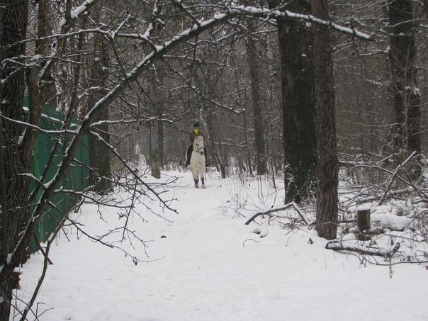 Воскресная тренировка прошла в лесу ибо плац в стадии замерзания. Это был приятный сюрприз для меня и неожиданное исполнение моей давней мечты. У меня нет слов! Это было восхитительно и незабываемое. Мне дали белое чудо по имени Эльбрус. Общительный, ласковый, мягенький. Такого тискать хочется! А под верхом как диванчик, реально! Сидишь на пуфике с подогревом, управляешь весом. Гуляли с Александрой по лесным тропинкам, любовались природой и носились по лесу. Природа Ботанического сада очень красива и навевает зимнюю романтику. На деревьях снег лежит. украшая белою каймой. Замечательные тропинки, по котором летишь с ветерком.