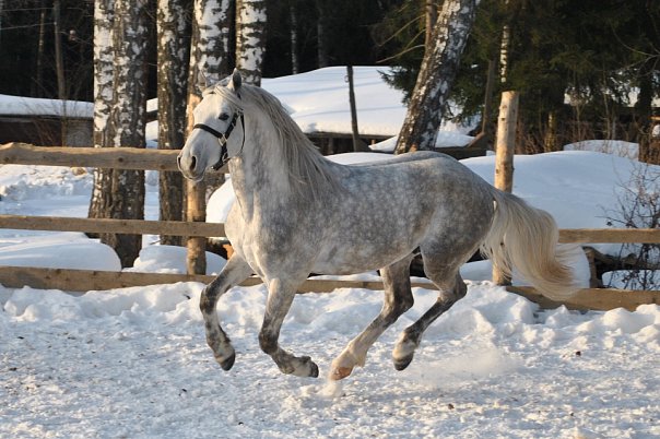 С удовольствием, спасибо, Мемфису передам))) В планах у нас однозначно он останется навсегда жеребцом, если будут достойные невесты, мы только за, в аллюрах он очень удобный, и рысь и галоп, сейчас ходит на тампе, сидя на нем никогда бы не сказала, что он орловец!!!