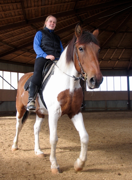 В тот же день состоялось моё первое занятие. Его звали Боря, он был гнедо-пегий алтайский старичок. Настоящий "Профессор" по обучению чайников. Шаг и рысь на корде, общей продолжительностью не больше 30 минут - так это было. На рыси нужно было держаться за петельку и закрыть глаза. Как вообще можно не выпадать???? На каждый темп меня перекашивало то вправо, то влево.