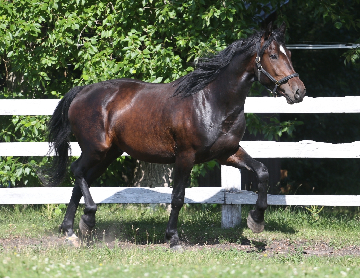 Живёт в леваде в шелтере, в том числе зимой, в конюшне тоже без проблем, гуляет в леваде с меринами, жеребцами , если они не дерутся. Сам не дерётся. Ходит спутанный, при необходимости.