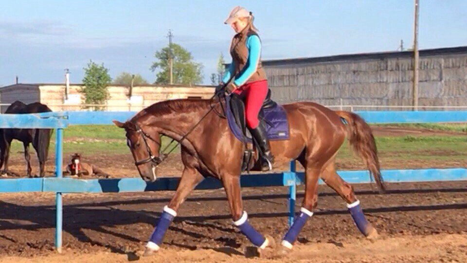 По семейным обстоятельствам предлагается в аренду тракено-рысистый мерин 2013 г.р. 170 см в/х. Спокойный, адекватный, добрый, полностью готов к ППД (стартовал), знает боковые элементы, прыгает до метра включительно. Находится в КК "Резвая" в двух км от Твери, ходит автобус. С тренировками и транспортом могу помочь. Возможно полная аренда, частичная и разовые занятия. 89607135688 Анастасия.