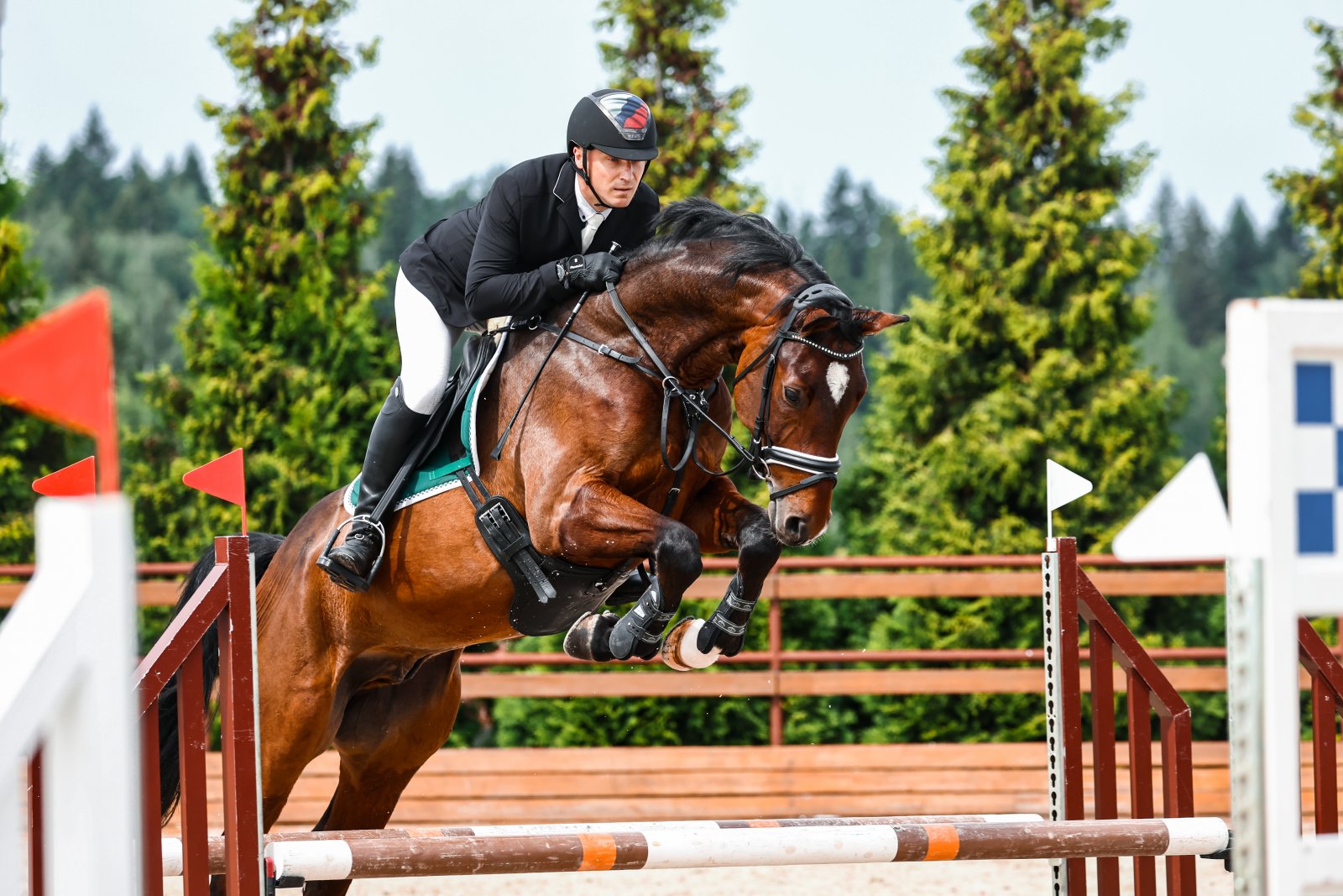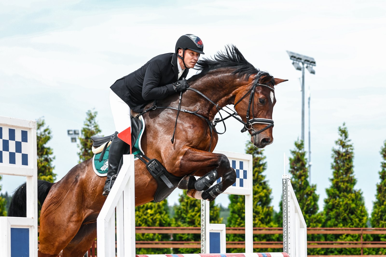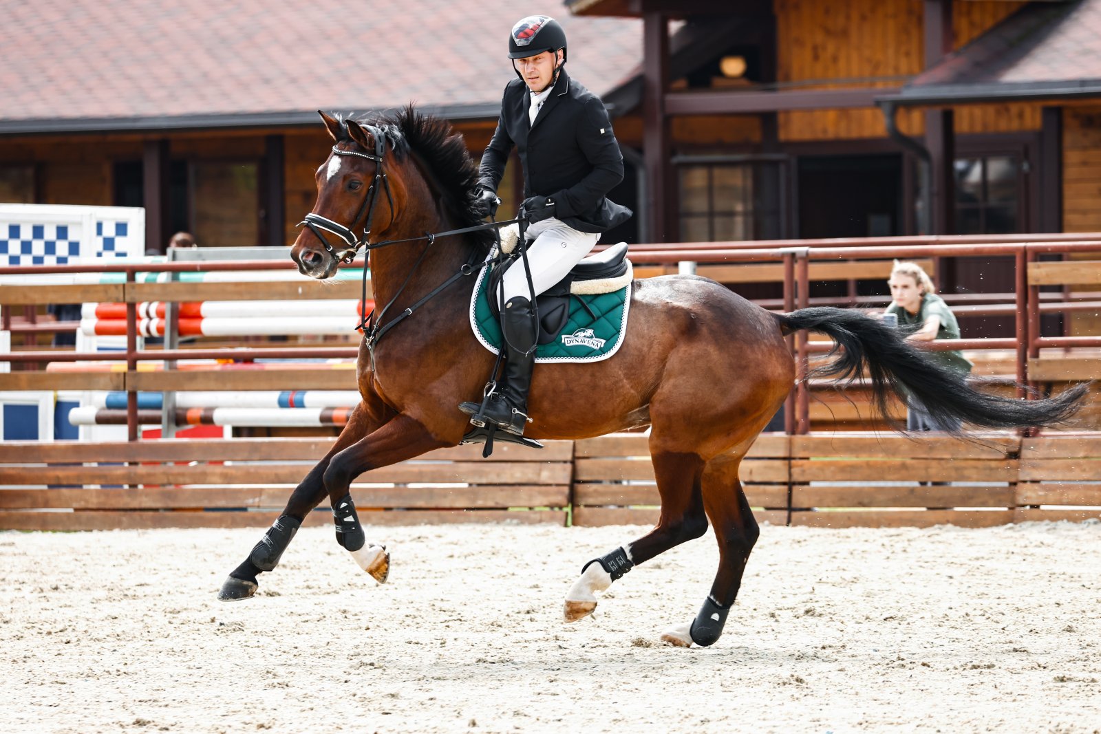 Был куплен в выездку, но выездку бежать он не захотел, был перенаправлен в конкур и очень успешно.