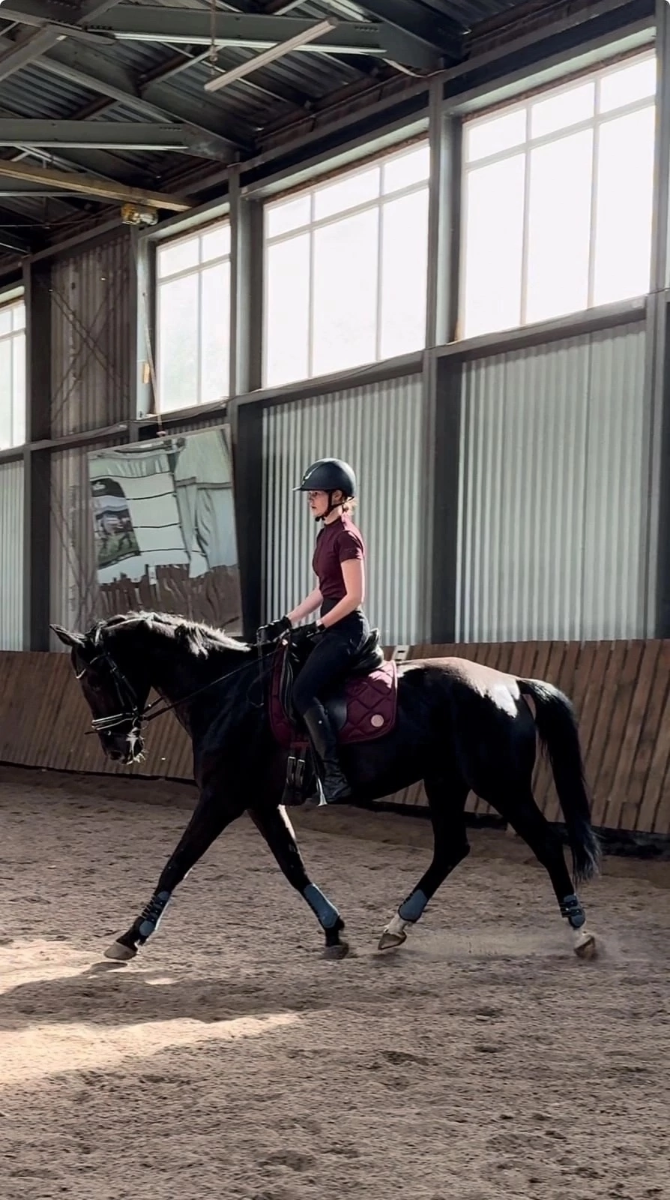 На данный момент работается в выездку и прыгает гимнастические ряды до 80 см для общего развития.