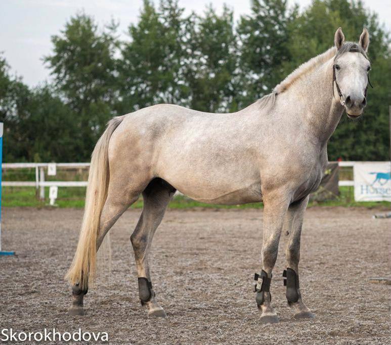 Мерин спортивной полукровной породы (отец - голштинской породы, мать - тракененской), серой масти. Линия Cor de la Bryere.