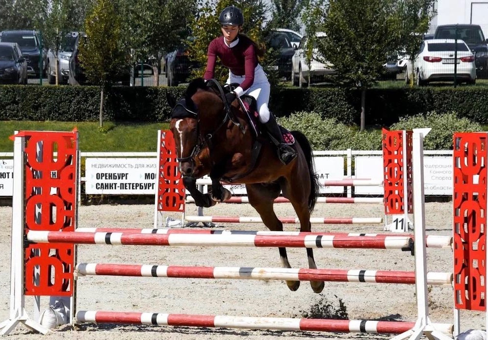 Старты - маршруты до 110 см, регулярно в призах. Дома - маршруты до 120 см, одиночные до 140 см. Уверенно идет на барьер, не обносит. Ласковый, безопасный. Станет хорошим учителем. Гуляет весь световой день, стабунен.